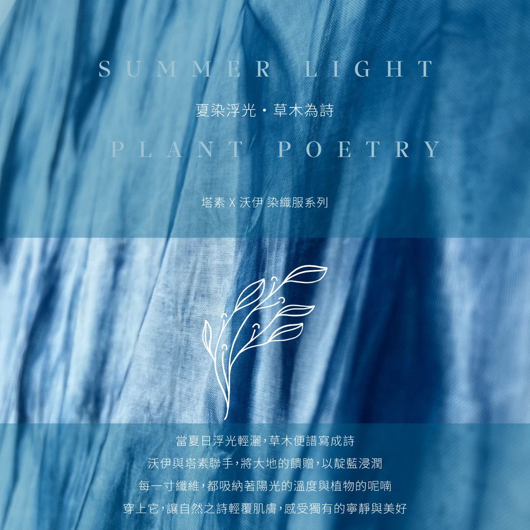 • 手工植物藍染,每件衣服顏色、圖案,也會因染色與製程的自然變化而略有不同。